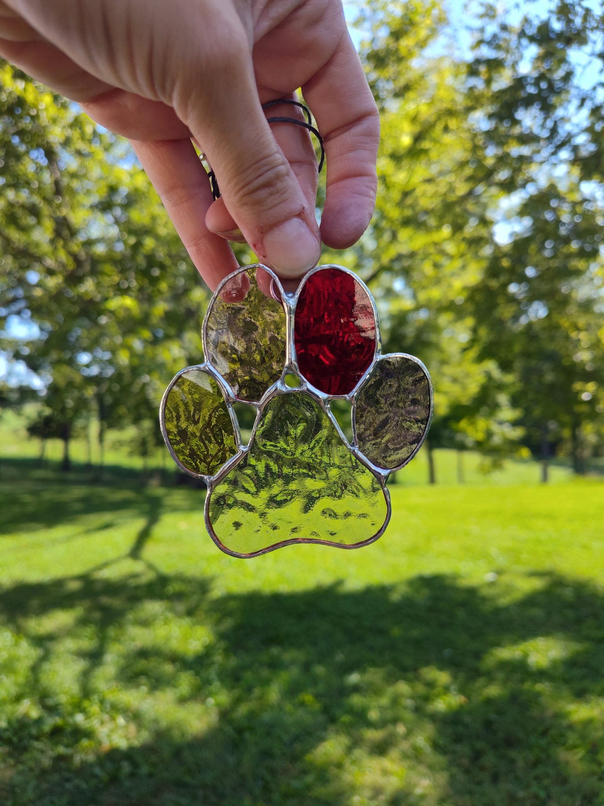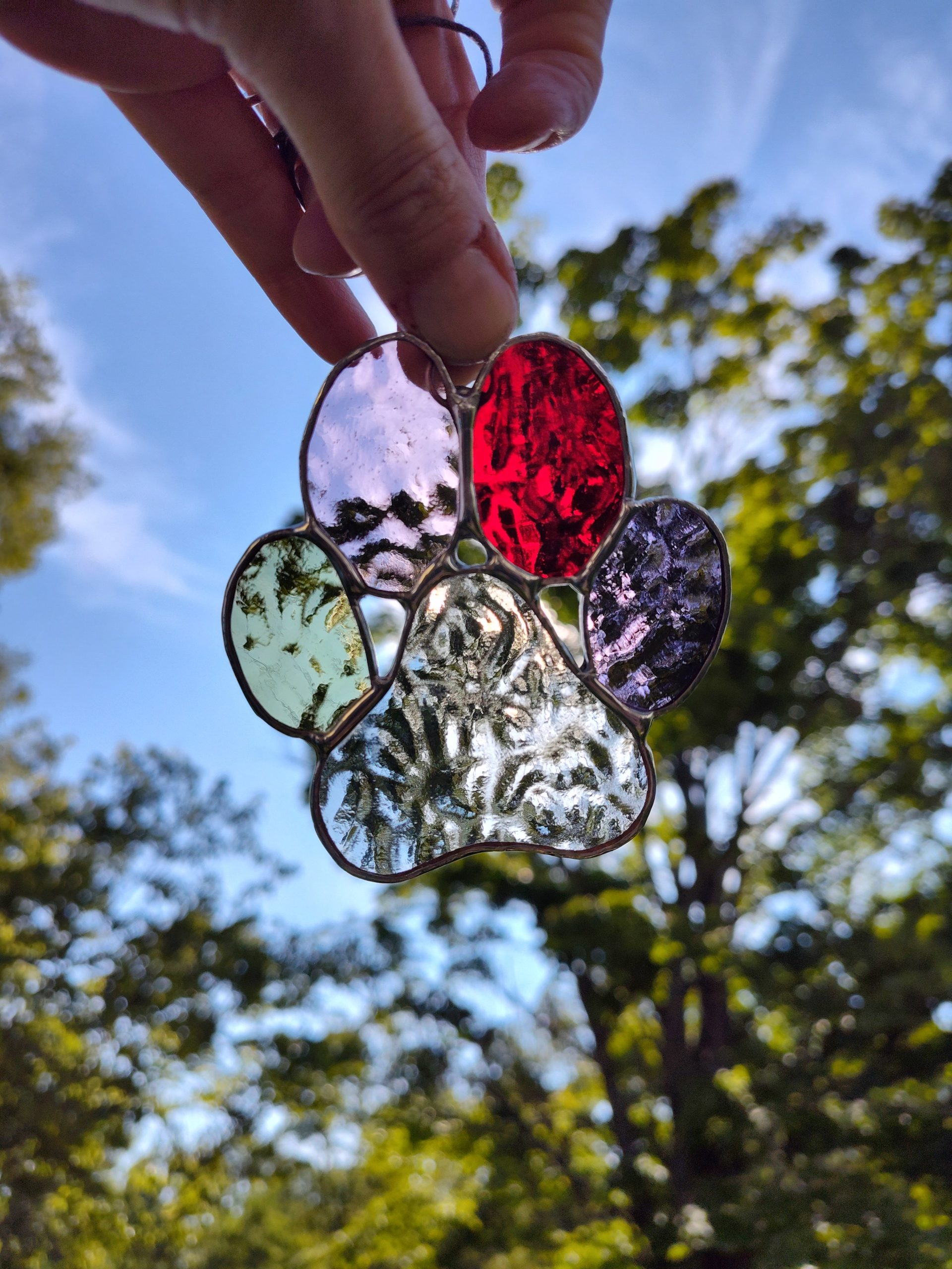 This is made with all different colors of transparent textured glass. Comes with an adjustable cord. *Contains Lead*