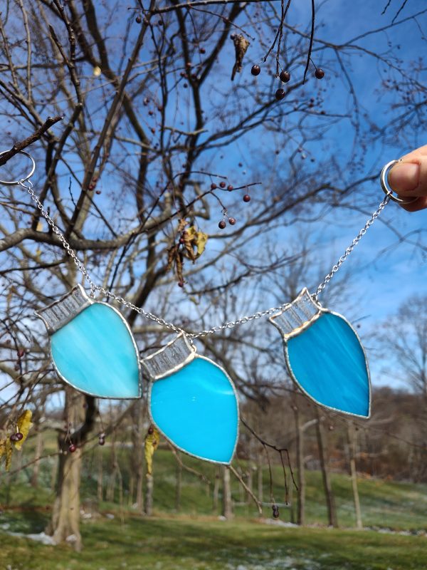 Made with two kinds of clear textured glass for the wings and head. A wispy clear and white translucent robe and a yellow transparent halo. *Contains lead*
