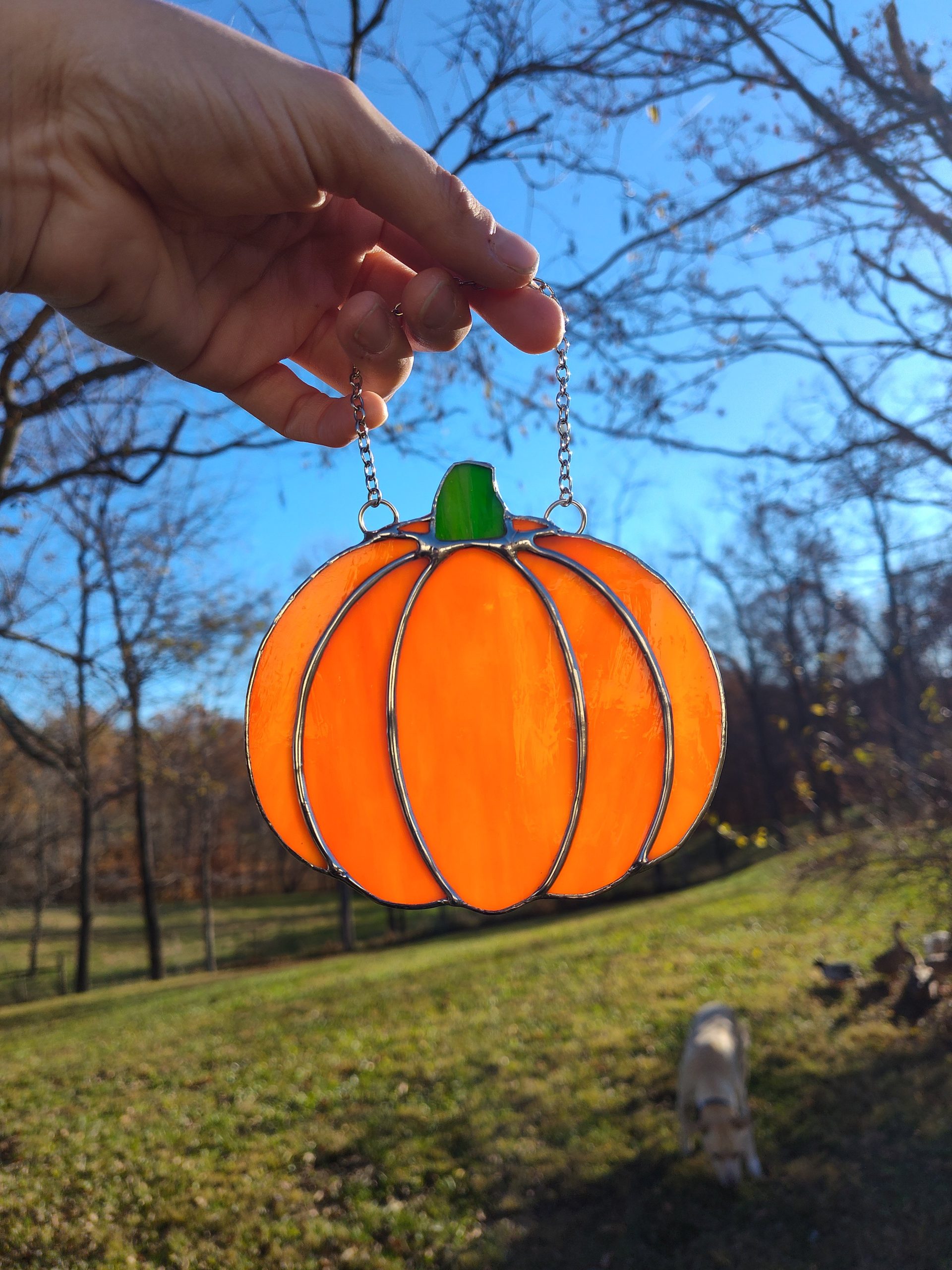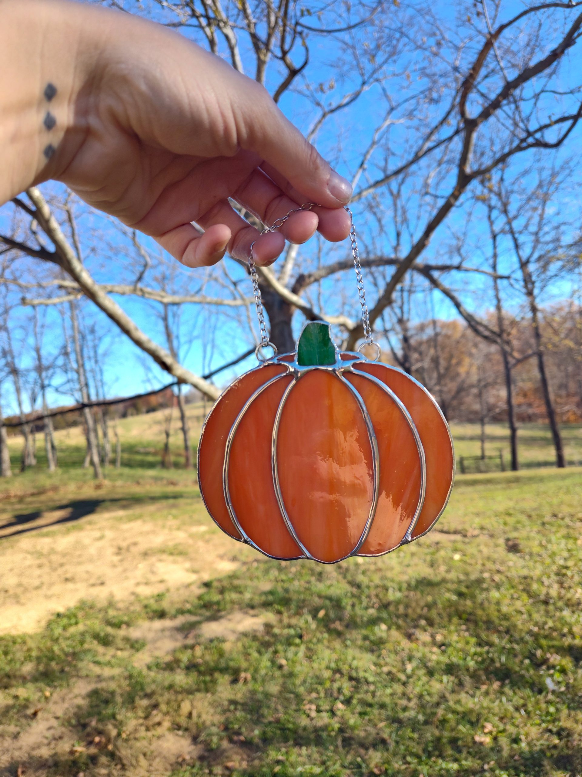 Made with orange wispy opaque glass. *Contains Lead*