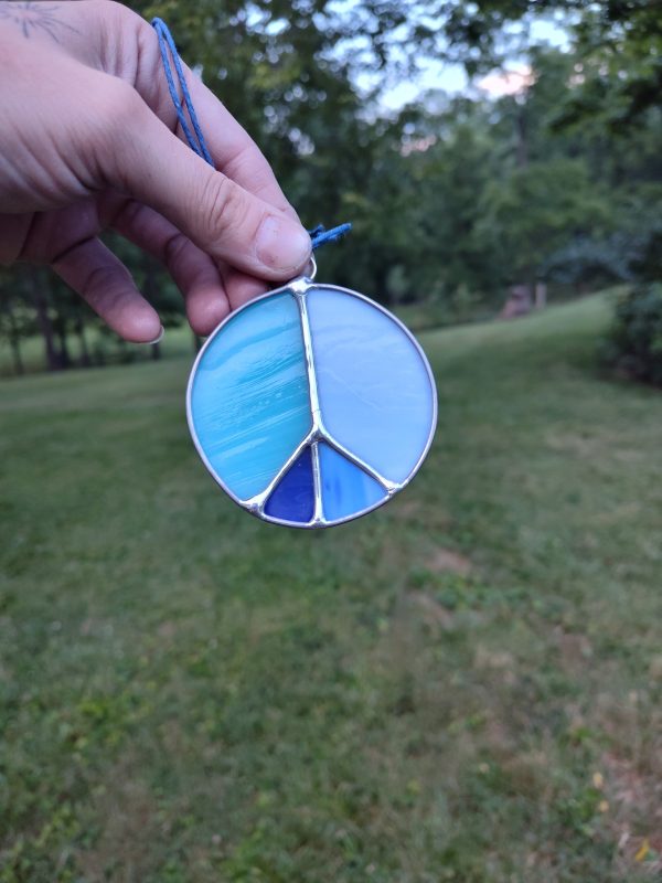 Stained glass version of a Celtic trine. Made with light green opaque glass. *Contains lead*