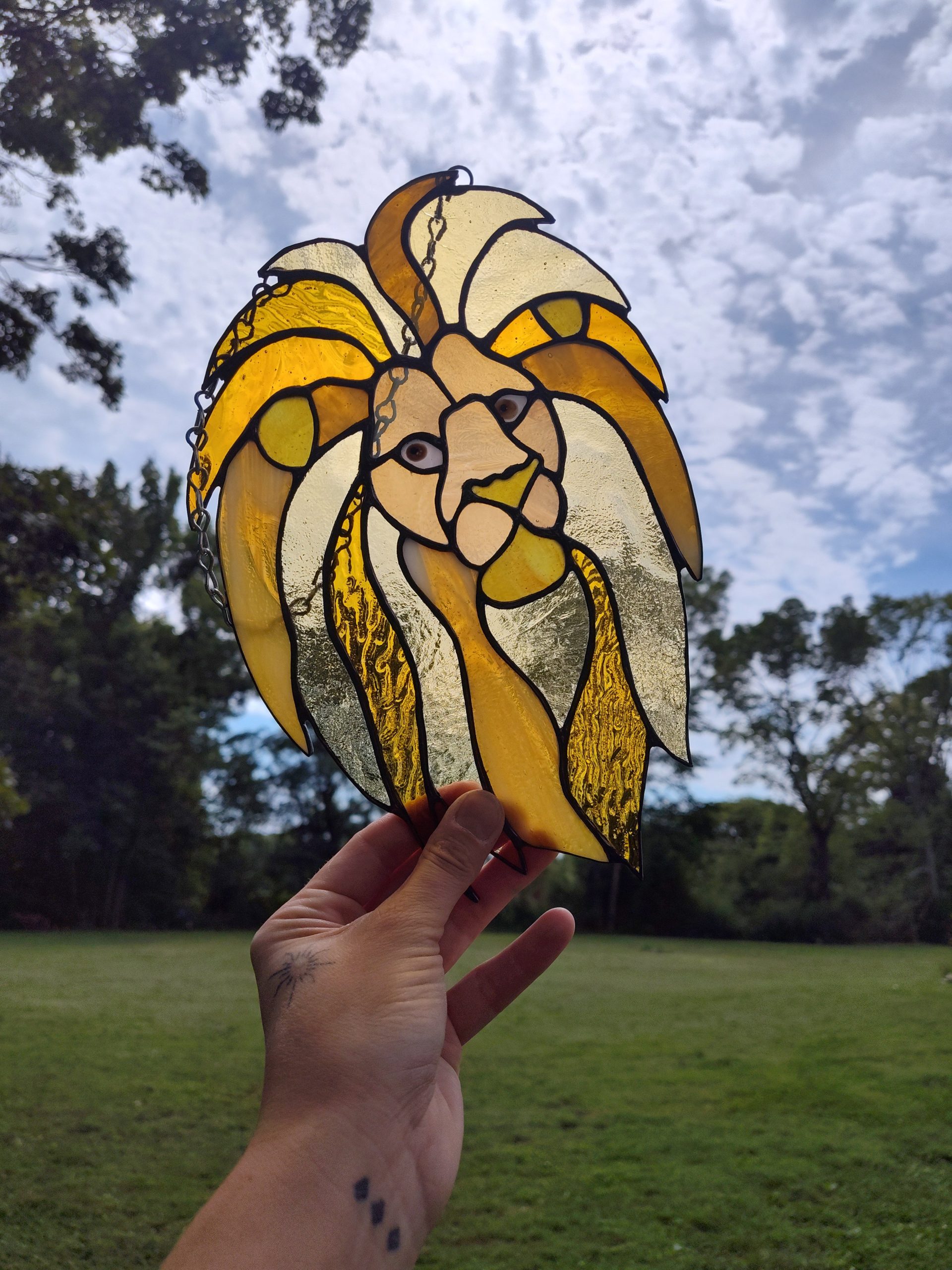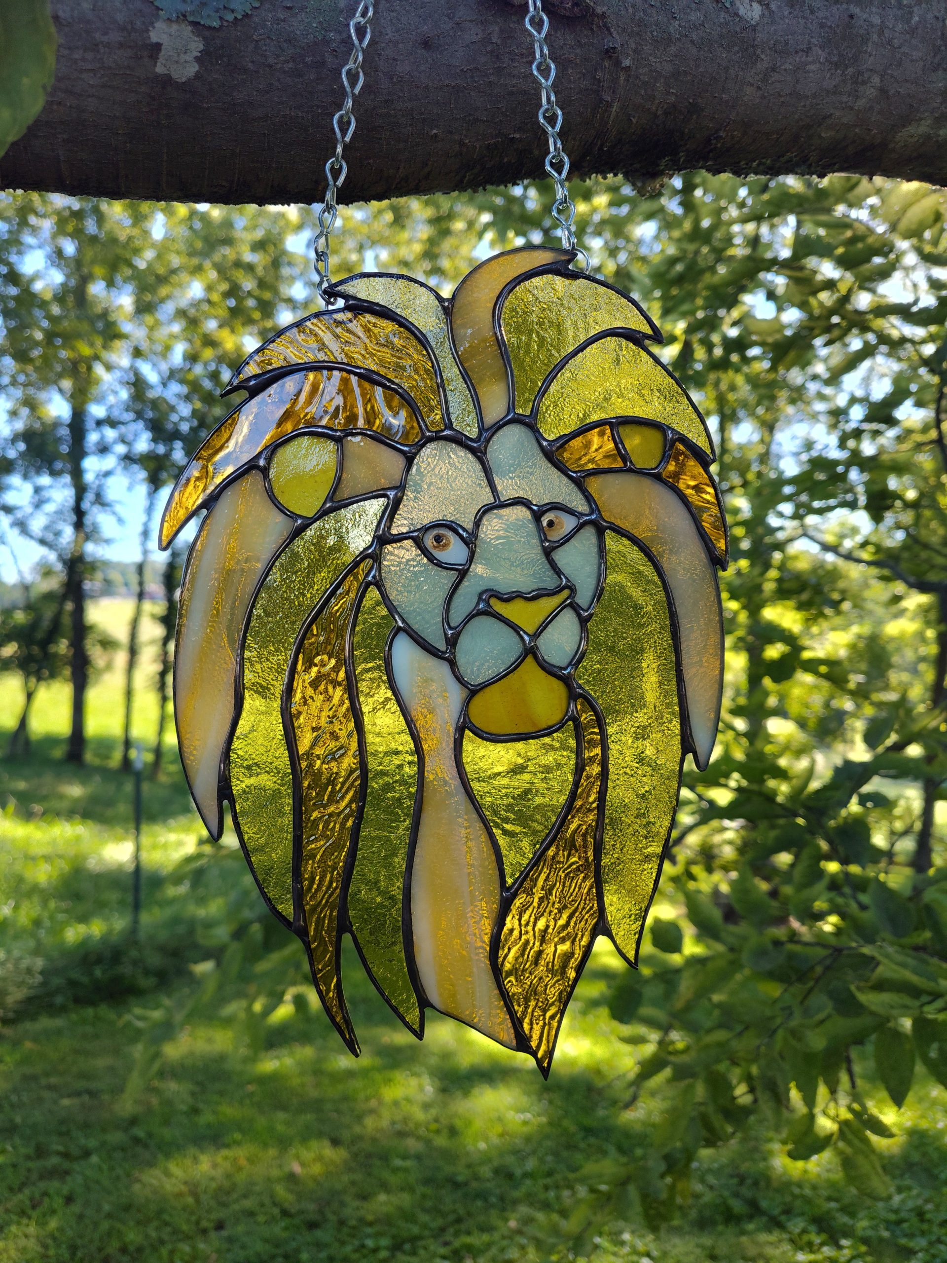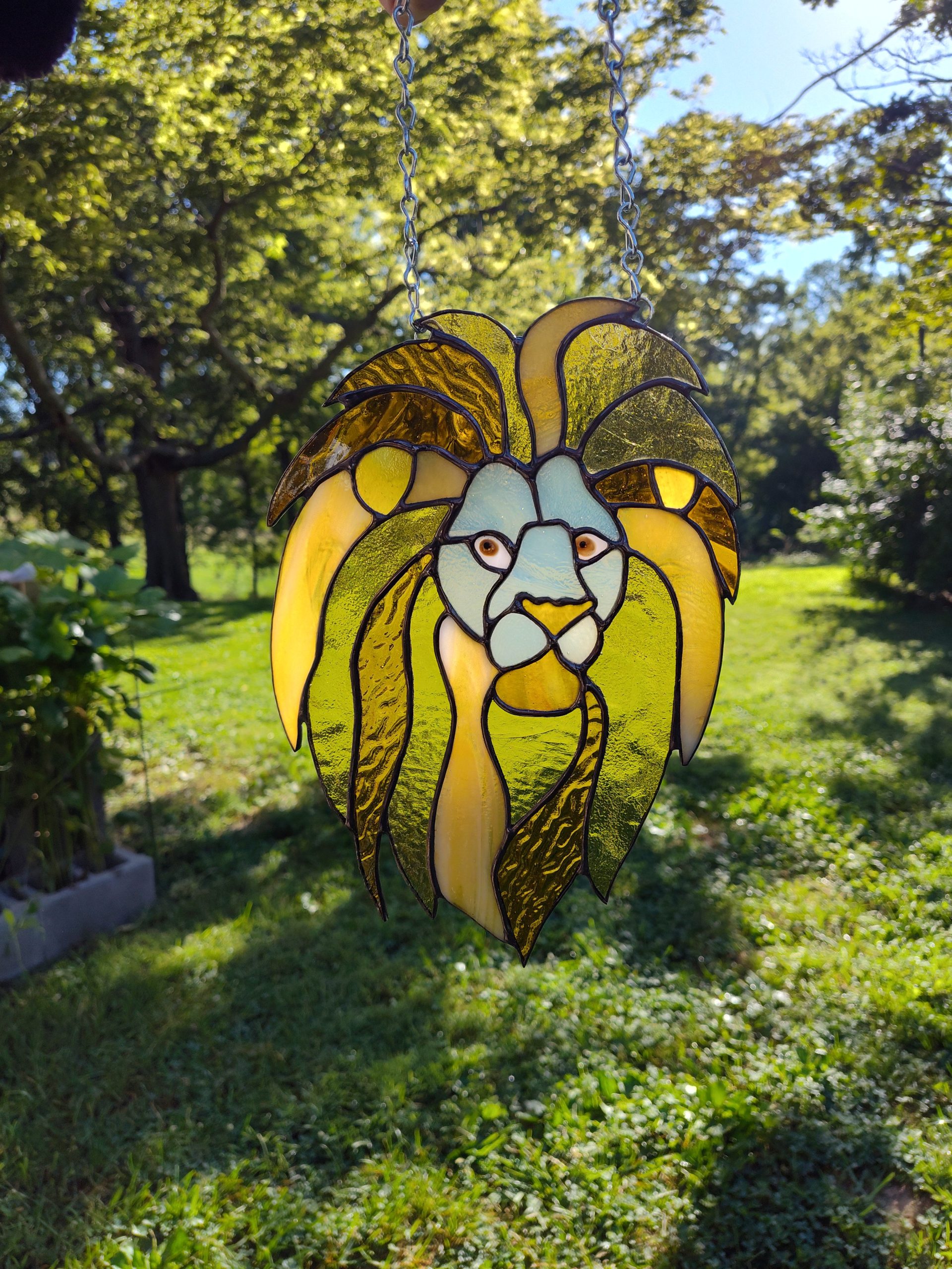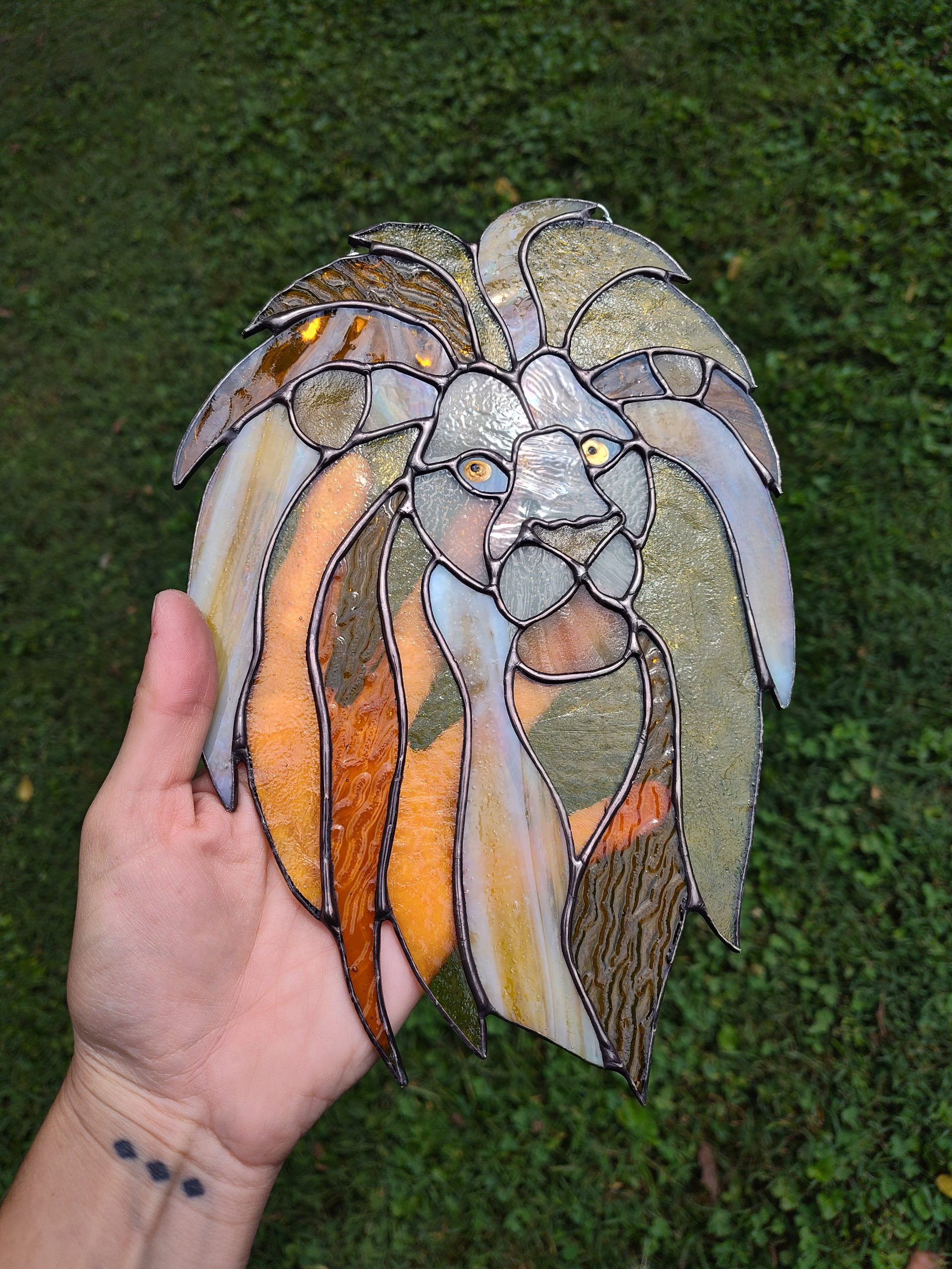This lion is made of differ colored golds. Transparent, opaque and translucent. with hand painted details and a black painta finish. *Contains Lead*