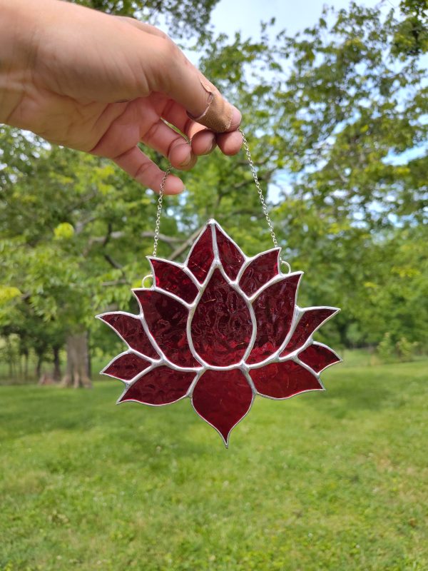 Made with transparent red glass. With an opaque red glass center. *Contains lead*