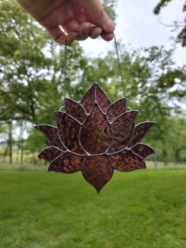 My Version of a Pink Eye with Pressed Flowers as Center. Finished with a came border. *Contains lead*