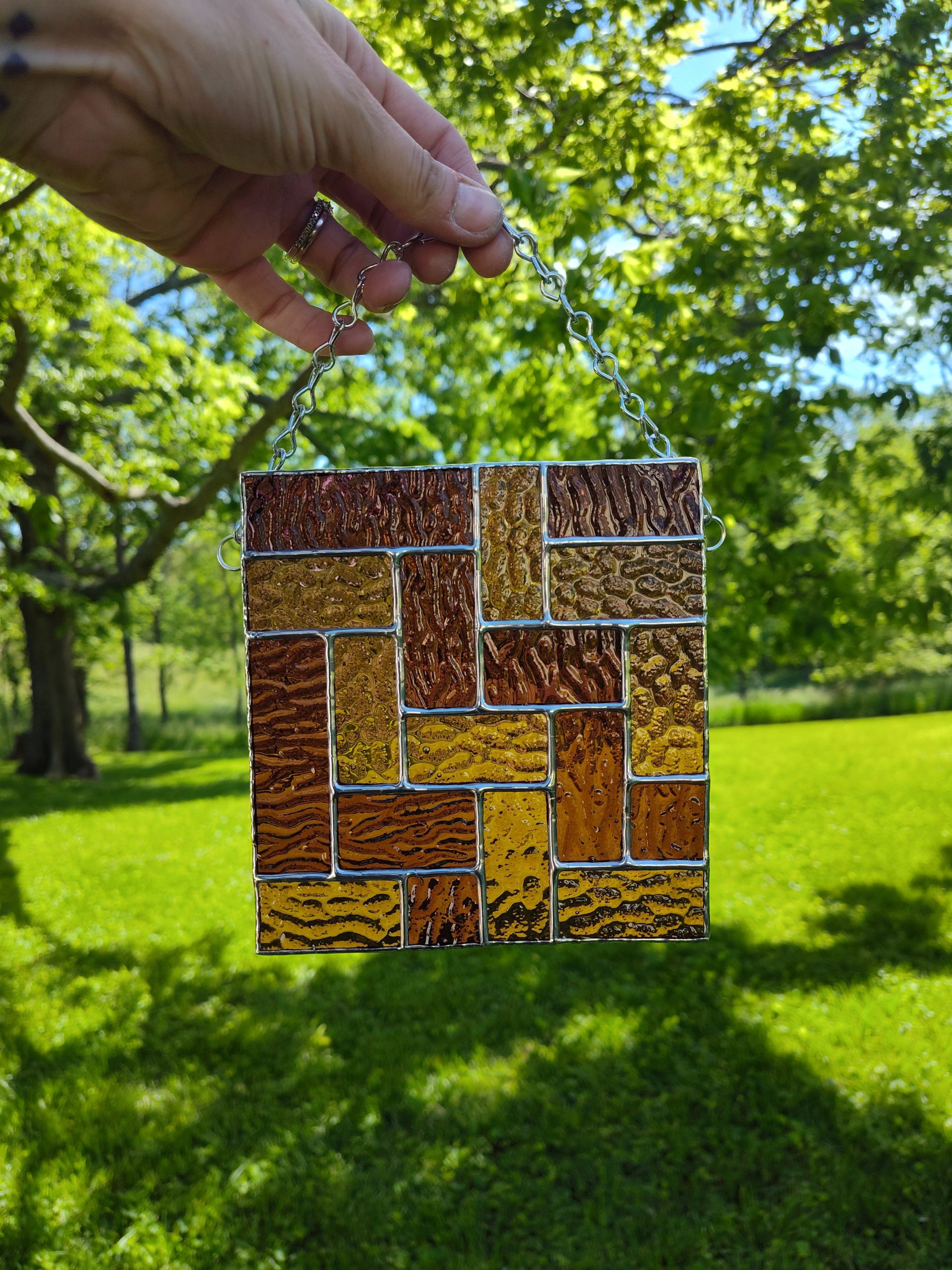 Made with purple transparent textured glass.